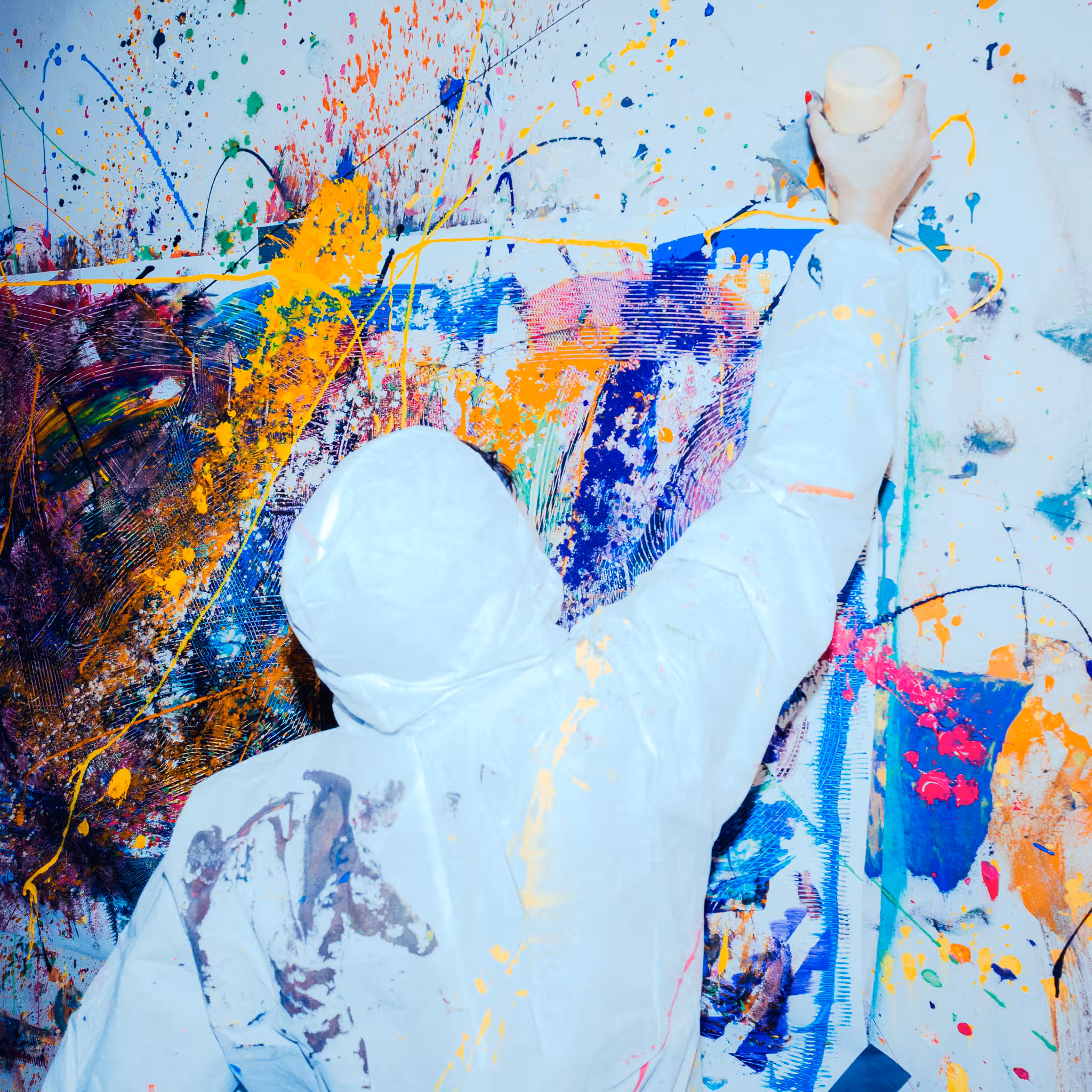 Tu enfiles ta combinaison, tu choisis tes couleurs, tu prends nos accessoires (gants de boxe, balles, brosses toilettes, outils fun…)et tu balances la peinture sur une toile XXL, sans règle, sans pression.