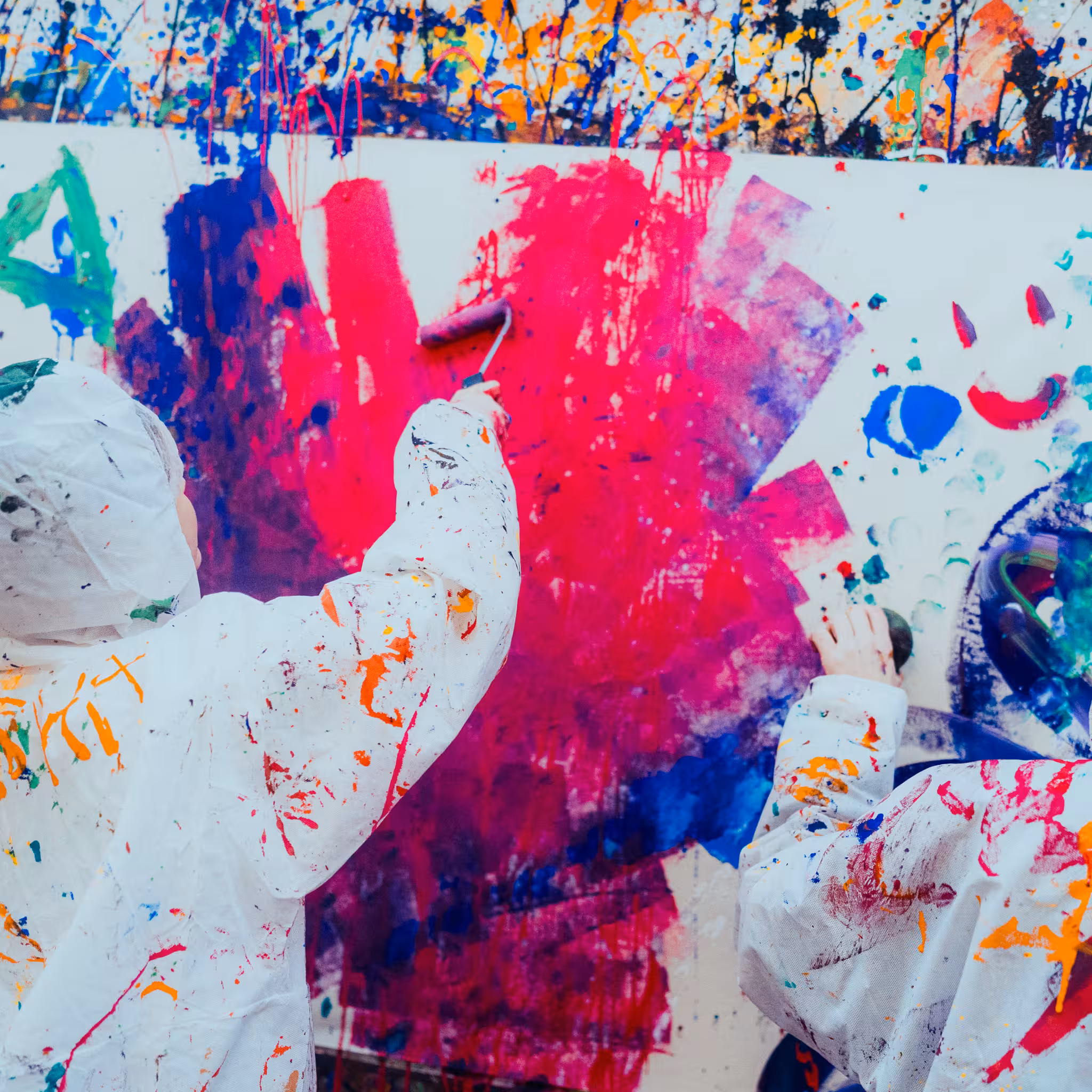 Avec breushDAYKIDS, chaque enfant a sa propre toile, son espace et son rythme.Ils enfilent leur combinaison, choisissent leurs couleurs, attrapent nos accessoires rigolos et peignent librement, en musique, dans une ambiance immersive et joyeuse.